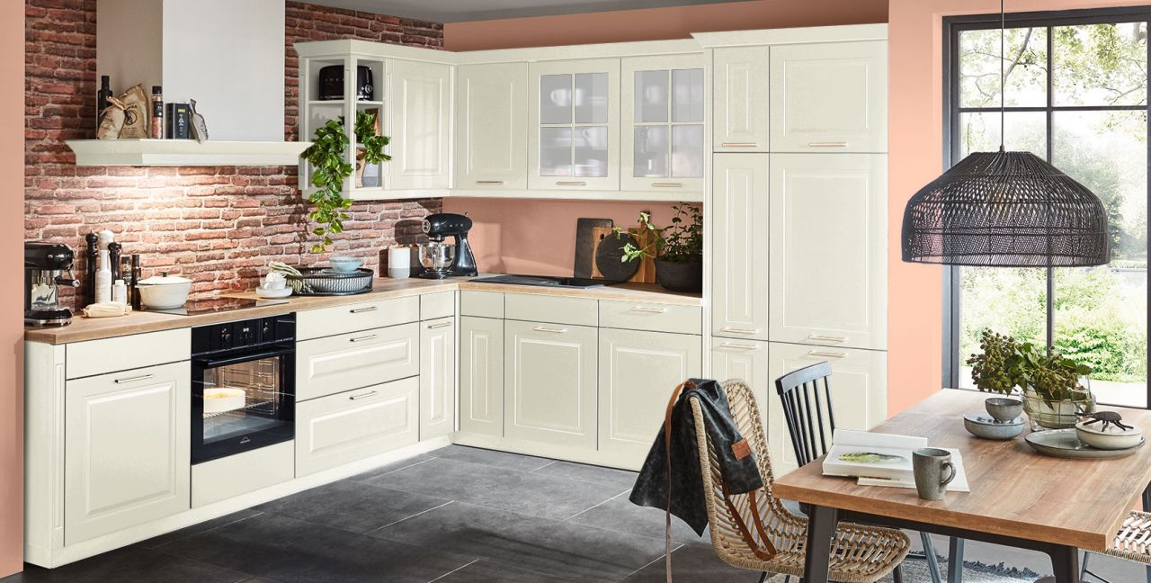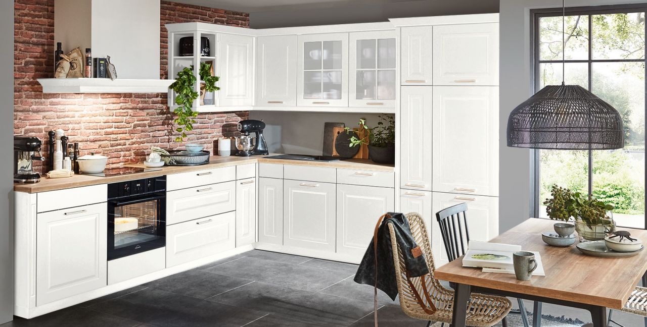 Inklusive Einbaubackofen schwarz Progress PBD34103B Energieeffizienzklasse A, Glaskeramik Kochfeld Progress PAS6001E, Landhauskamin mit Lüfterbaustein Airforce F96-60 Energieeffizienzklasse C, Kühlschrank mit **** Gefrierfach Progress PK0854 Energieeffizienzklasse E, Einbau-Designspüle Franke Strata STG614-78, XL-Schränken, Wandschrankregal im Landhausstil, Wandschränken mit Glassprossentüren, Kranzleisten, Lichtblenden.