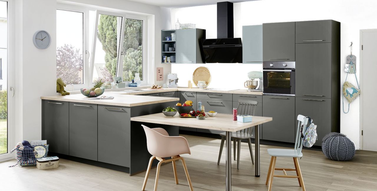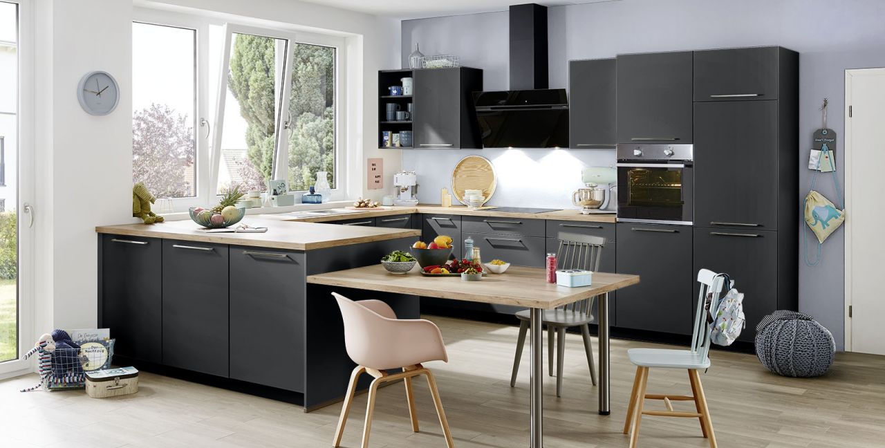 Inklusive Einbaubackofen schwarz Bosch HBA3340B0 Energieeffizienzklasse A, Glaskeramik Kochfeld Laurus LCA600ZKB, Designesse Edelstahl / Schwarzglas Elica STRIPE90BK Energieeffizienzklasse B, Kühlschrank Laurus LKS88E Energieeffizienzklasse E, Einbauspüle Edelstahl Rodi Okio Line 85 Deep, XL-Schränken, Wandschrankregal, Essplatz.